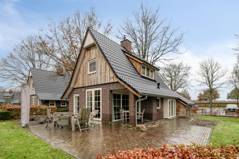 Een locatie met een fantastisch vrij uitzicht over weilanden en de bosrand van de Hellendoornse Berg.